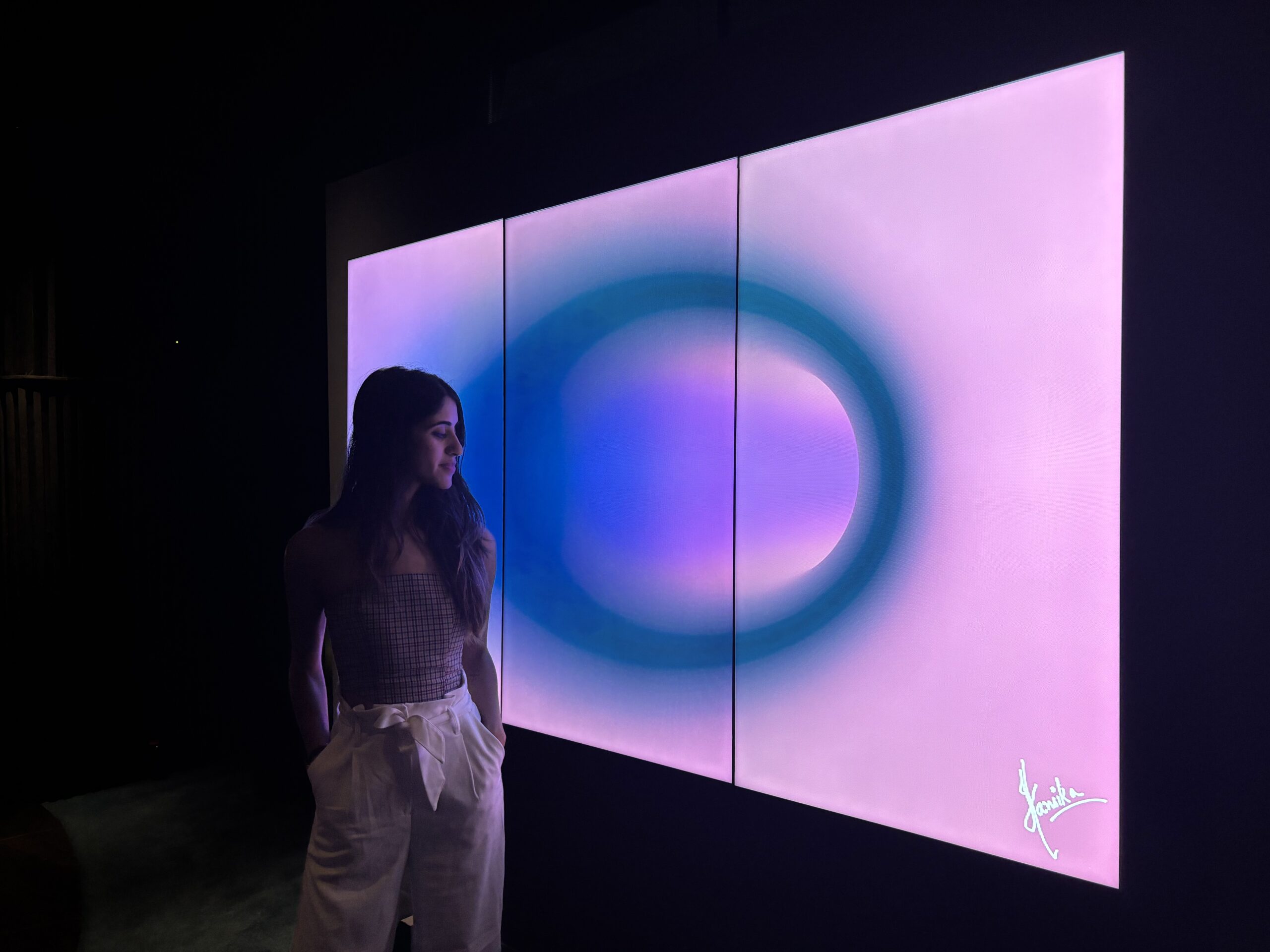 Hansika Mangwani is a visual artist and art therapist from Pune, India, whose work is a luminous exploration of identity, values, and the human condition. Hansika Mangwani works transcend conventional boundaries - harmonizing light, sound, space, and time to unveil the intricate subconscious dynamics woven within the human physiological and emotional systems.